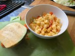 As you can see from the picture I assembled the apparatus as given in Paul Hollywood’s book Bread – a clean Kilner Jar, 250g Strong White Bread Flour, 250 ml of water and a few chopped grapes. I mixed it up, threw it in the jar and clamped on the lid. In the following days the magic began to happen and the sludgy mess began to bubble and rise. Three days later, once it had begun to fall back to original level and as per the instructions, I discarded half the mixture and refreshed it with 100g flour and 100ml of water. But when I got home from work the following day, rushing in eagerly to check on the progress of the anticipated bubbling alien life-form in the jar, it was obvious that something was very wrong. A layer of fluid was forming on the top and I once again had a sinking feeling myself. I attempted another refresh with the hope of performing some form of sourdough CPR but it was obvious by this weekend that there was nothing more that could be done. The offending gloop followed the rye-based building materials into the bin and this afternoon I have started again. I’ll let you know what happens…