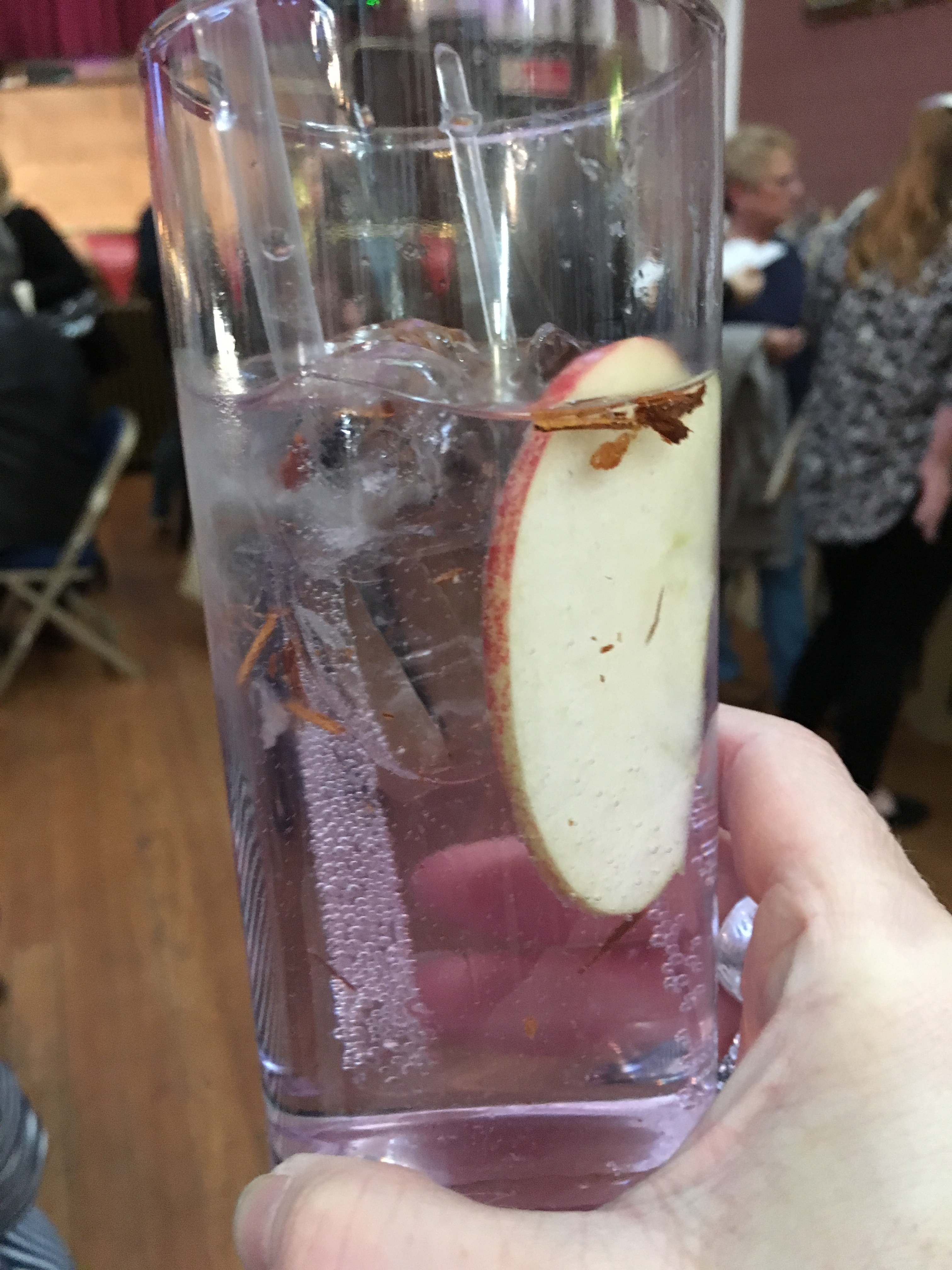 Finally! This had a refreshing burst of fantastic fruity flavour and instantly became one of my new favourite drinks. In fact, so refreshed was I that I nearly forgot to take its picture until I was halfway down the glass. I had also successfully acquired my final tiny (but free) taster – the JJ Whitley Elderflower Gin which I can safely describe as “floral and yummy”. Definitely the kind of thing that could be drunk with an appropriate mixer, or even without. I could also see it pairing nicely with some apple juice, perhaps topped off with a dash of prosecco. One for a future post – I’ll let you know how it turns out!
