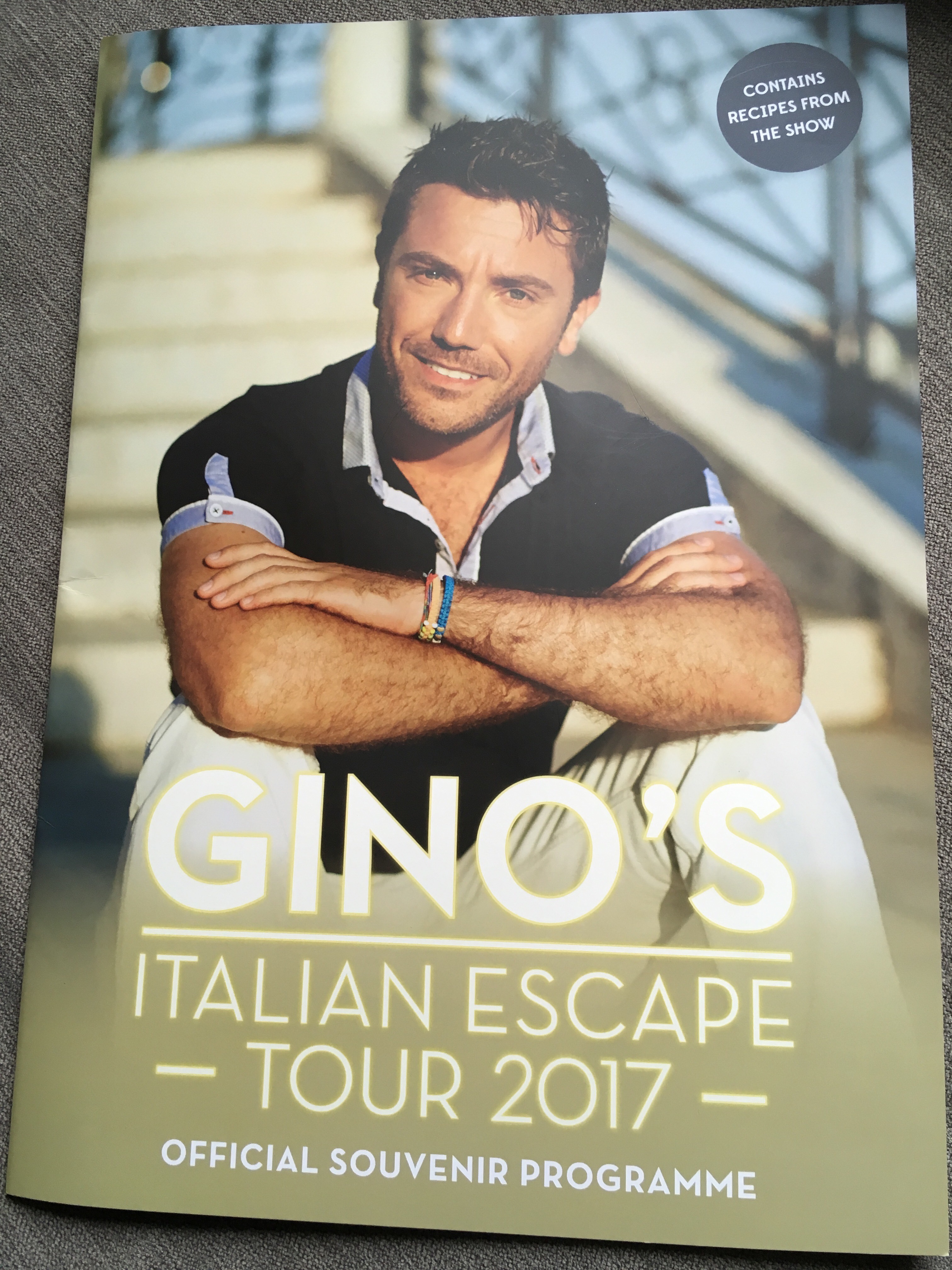 Feeling less than 100% was unfortunate really as we had tickets to see TV Celebrity Chef Gino d’Acampo at the Corn Exchange in Cambridge. Not wishing to be beaten by a gippy tummy, I summoned myself for the evening’s entertainment. Our trip in was more eventful than it needed to be. We almost managed to get on the last bus into town, but a rather despicable bus driver pulled away just as my husband drew level with the door of the bus, leaving us to walk 20 minutes back the way we had just come to the house to pick up the car. Despicable bus driver – you are now on my list. You will get yours…